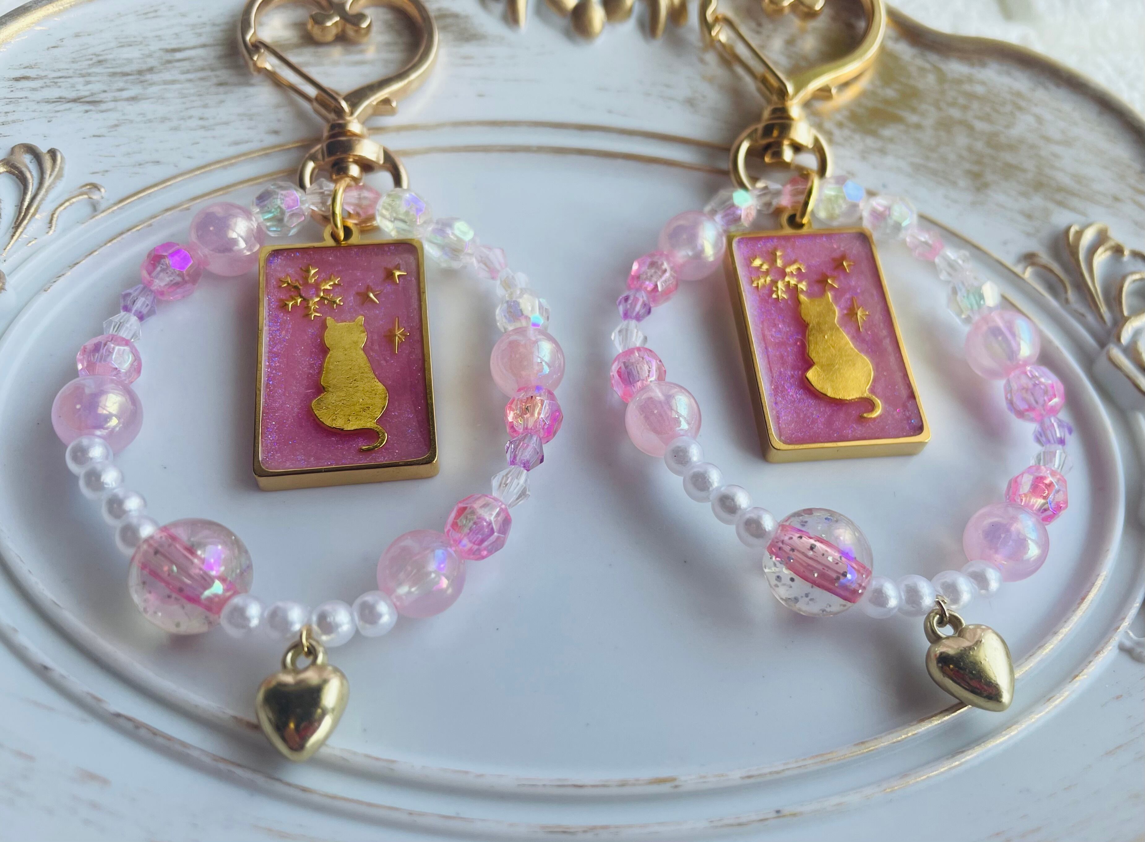 キラキラ猫ちゃんとビーズが可愛いバックチャーム❤️